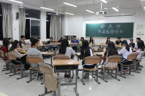 本网讯4月29日晚,广外云山学生勤工助学(南,下简称“勤工”)公共关系部(南,下简称“公关部”)在教学楼A302举办了公关员工分享会。