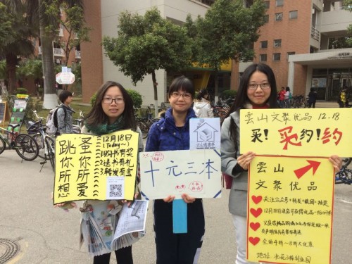 11点半左右,也就是放学的高峰期,校道上的人流量逐渐多了起来,北苑三栋的创业园也开始变得热闹。一走进创业园就看到一条长长的桌子上摆着各种杂志,桌子上放着一块写有“10元3本”字样的牌子,这是负责给云山逸书亭宣传的学员的策划。继续往里走,便看到文聚优品店里也是顾客满满。学员们正在热情地招呼顾客,他们想出了店内商品打4折到8折的优惠来吸引顾客,同时在店内只要做一份关于文聚优品市场调研的问卷就可免费获得一罐邓老凉茶。