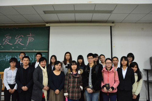 本网讯12月19日晚,由云山勤工校友会秘书处(南)主办的首届“微爱发声”微公益策划大赛复赛在南校区教学楼C座208举行。一共有十支队伍在激烈的初赛中脱颖而出,进入复赛。担任本次大赛的评委和嘉宾有云山勤工常务董事林满琪、广外自强社社长梁金燕、云山勤工校友潘焯龙、学生资讯中心副主任陈晓莹、政治与公共管理学院团委书记陈三丰老师、广州市番禺区子惠康复中心负责人谭添尹、韩后品牌部文案策划莫莉莉。复赛将挑选出三支队伍进入决赛。