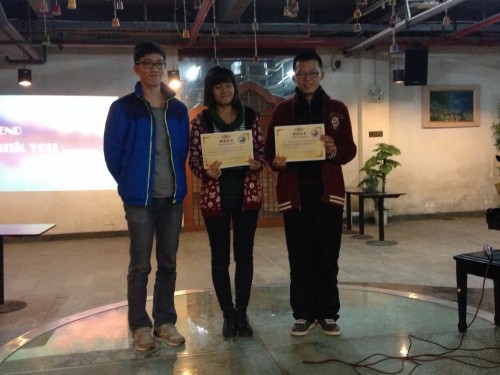 小组展示结束后,主持人揭晓了获得“优秀小组”称号以及“优秀学员”称号的名单。其中,第三组和第五组获得了“优秀小组”的称号,黄锦畦、何霡坚、刘子琪、李桂晓、张宏业、罗诗铧、潘华熙、徐雯、张菱月和刘晶莹十位学员获得“优秀学员”的称号。随后,林满琪为优秀小组代表颁发奖状,谷明杰和林喜盛为优秀学员颁发奖状。