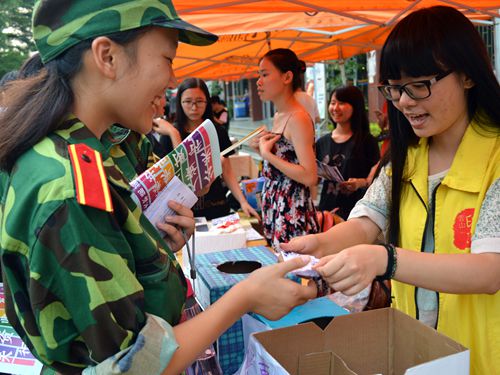 正午时分,虽然是顶着烈日,但大家的热情从没有灭过,反而越燃越烈,所有工作人员都尽力地做好自己的本分工作。校道上挤满了前来咨询的师弟师妹,大家都卖力地跟他们宣传讲解,现场气氛十分热闹。