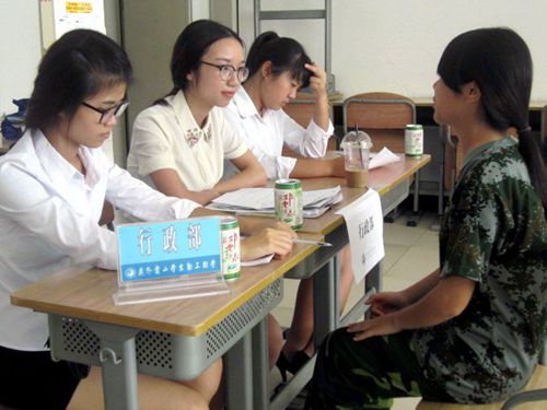 面试开始后,各部门的经理、主管正襟危坐,认真地面试每一个面试者。而其他工作人员则是进行签到、派发凉茶、指引面试者进场和退场的工作。现场虽是人潮汹涌,却秩序井然。本次面试的题目大多根据各个部门的特点来设计,不仅考察面试者的综合素质,还要考察面试者是否适合该单位。其中,公关部面试官根据面试者所面试的组别提出相应的问题,如面试传播组的被要求借中秋节怎么宣传云山勤工这个品牌等。一整天的面试下来,大部分职能部门都表示自己部门今年能招到想要的人才。