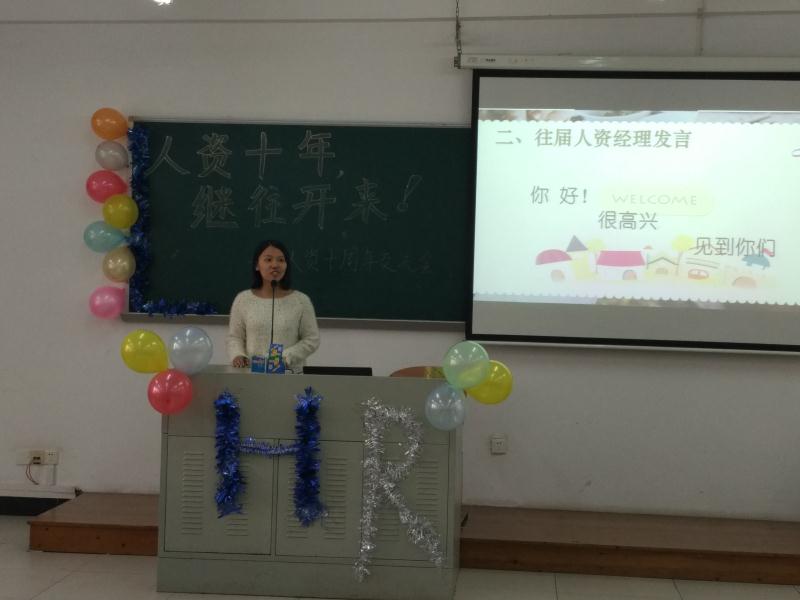 经过主持人的介绍后,各位嘉宾陆续上台发言。首位发言嘉宾是第八届人资部经理谢雅冰师姐。其幽默轻松的交流方式,让原先有点拘谨的新员工很快投入与她的交流中。对于后辈们提出的疑问,她都热情地为他们解答了。“人资真的是一个温暖的家”,她用自己在人资的经历,向与会人员传达她对人资部的感恩之意。