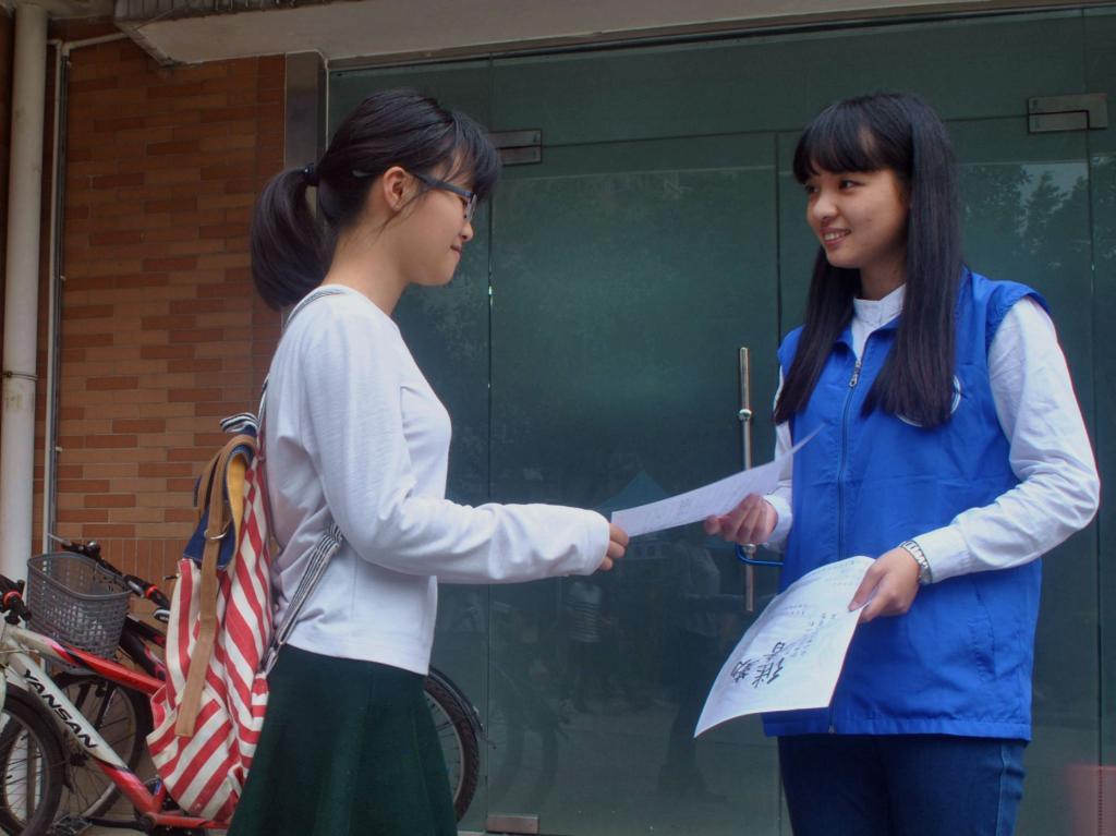 过往学生在摊位向相关工作人员咨询