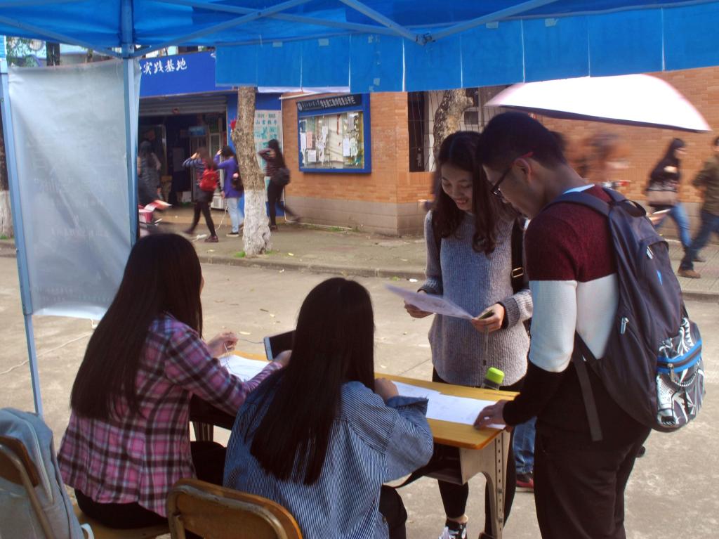 本网讯 3月8日,正值妇女节之节日,广外云山学生勤工助学公共关系部(以下简称“公关部”)在校道进行了“云山杯”职业经理人挑战赛暨云山勤工管理层换届校道摆摊咨询会。此次咨询会,公关部的全体成员都以饱满的热情参与到了其中,并且对此次职业经理人挑战赛进行了大力宣传,从而吸引到更多的人来报名参加此次挑战赛。