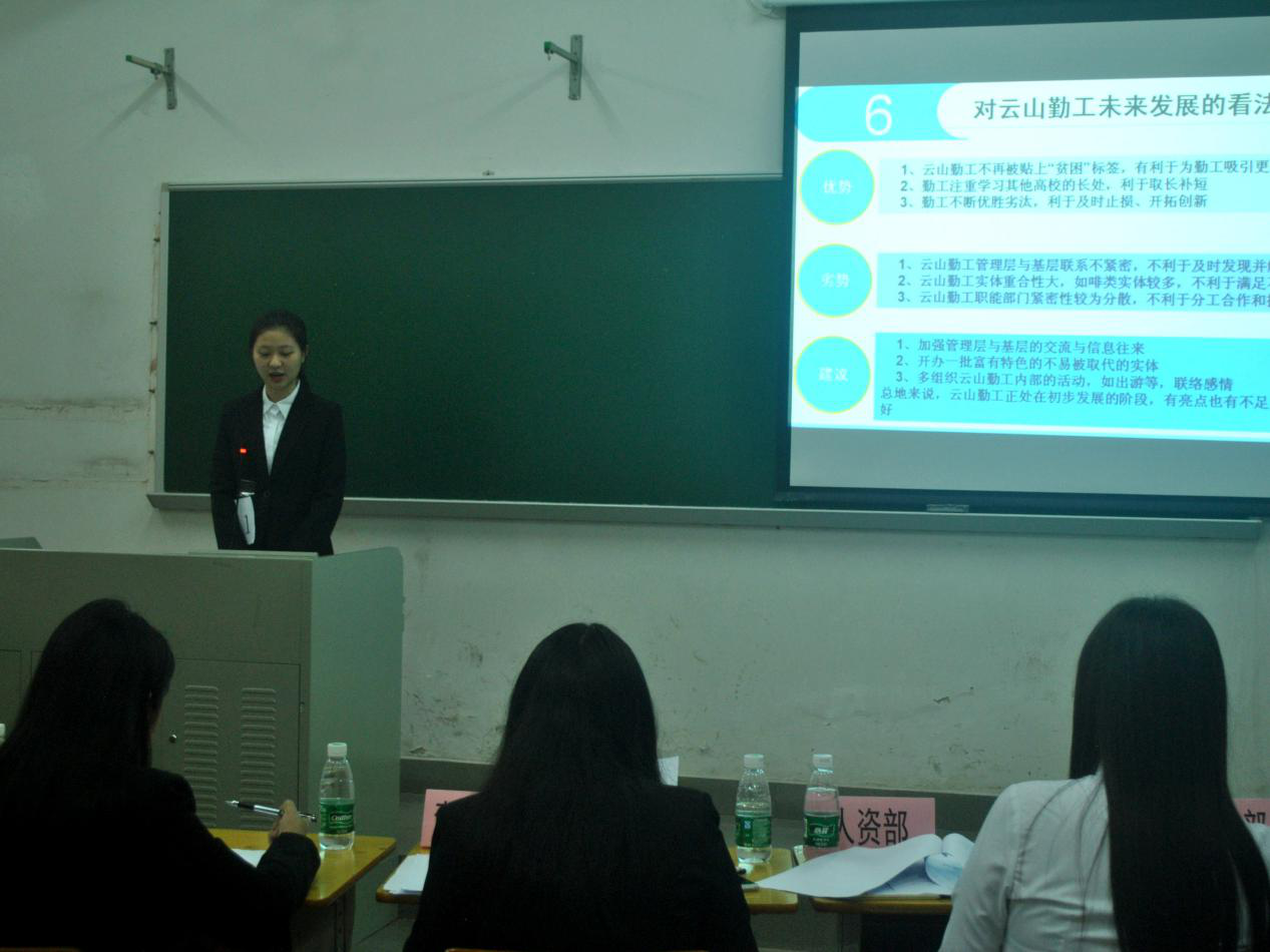各位选手分别从自己对于竞选部门的部门定位与职能、部门目标、工作计划、部门存在问题和建议、内部管理办法以及对云山勤工未来发展的看法做出自己的阐释。每个人的发言都颇有自己独特的想法,大家都将自己对于部门未来发展的热枕和希冀在有限的展示时间中大胆地展现出来。