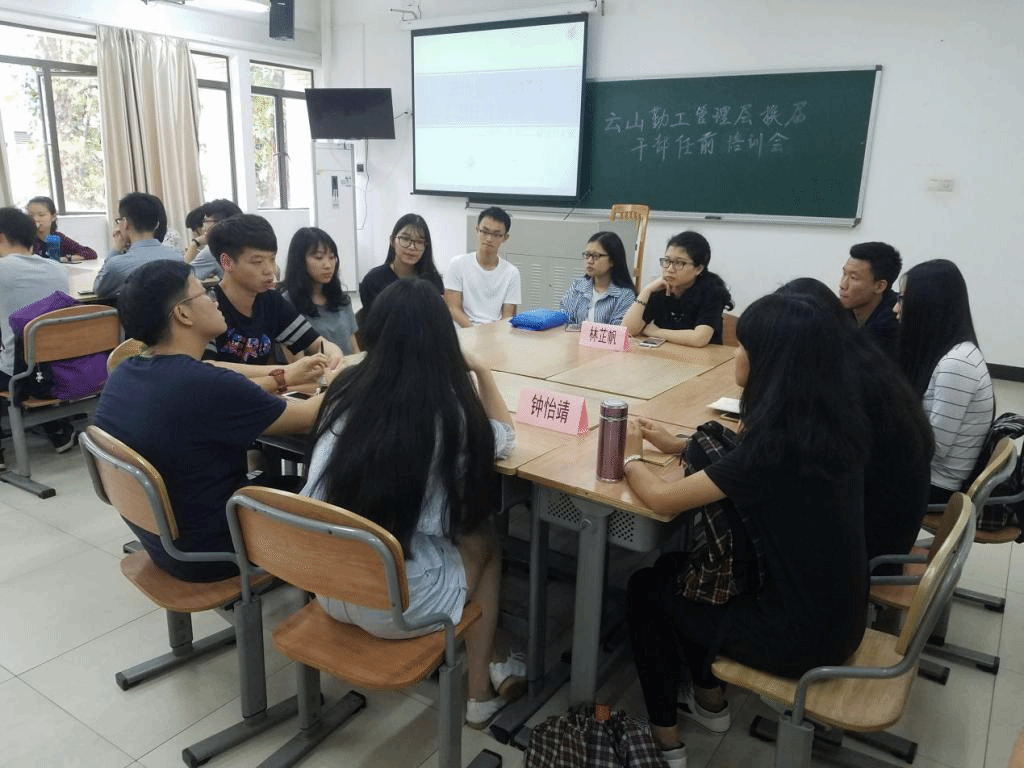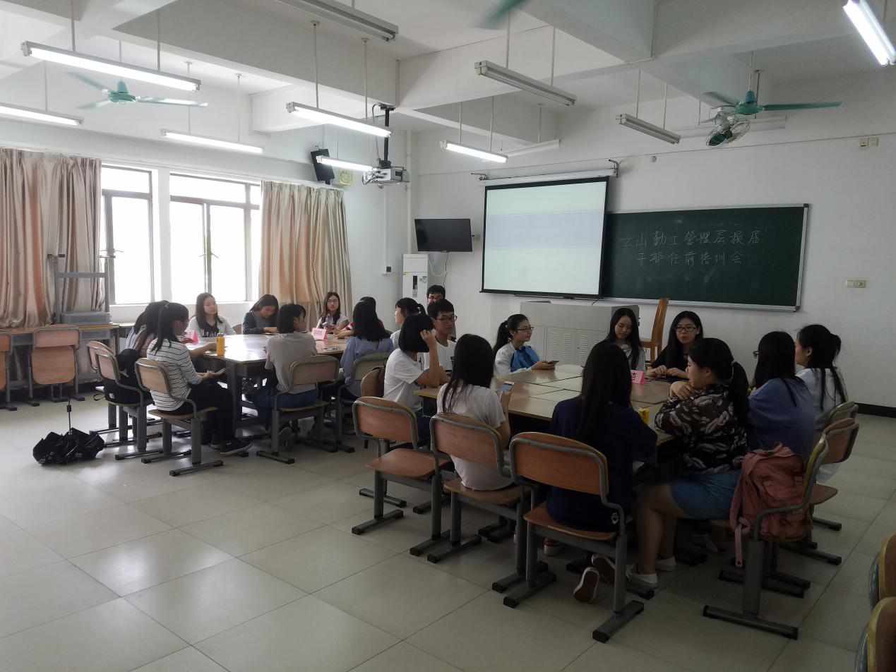 本网讯 4月20日下午,2017年广外云山学生勤工助学(北,以下简称云山勤工)管理层换届干部任前培训会在六教B306举行。本次培训会旨在让处于实习期的各实体队伍和职能部门管理层增强管理所处团队的意识,并进一步提高自身的管理统筹能力。参与本次培训会的有云山勤工现任董事、经理以及实习期的实体竞投队伍和职能部门经理。