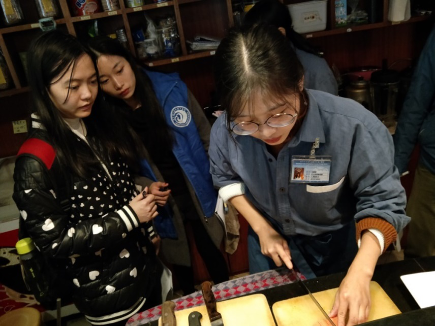 优座员工演示食品加工过程