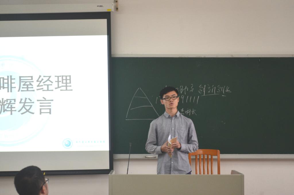 然后咖啡屋的经理吴文辉跟我们分享了对于管理的看法和自己的经验,他认为管理者起到引领作用,并提醒我们正确地定位自己;另外,他还给我们辨析了策略和战略并推荐了一些管理方法。最后,他表示加入勤工是他大学以来做过的一个最正确的选择,他很享受其中的酸甜苦辣。他也希望所有的人都能不忘初心。