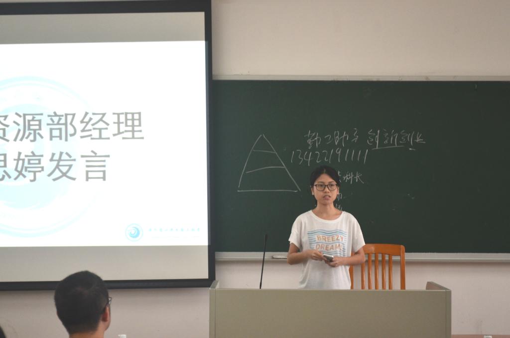 紧接着是师兄师姐们的经验分享。首先是吴灿婷师姐的分享,她强调我们要意识到我们职位的改变,要注意做事情的方式,站在管理者的角度上想问题,同时也不能滥用权力,要把勤工的利益放在首位;在处理问题的时候不要让情绪先行,要学会好好地去沟通。此外她还鼓励我们要有自信,不必拘泥于同样的管理模式。