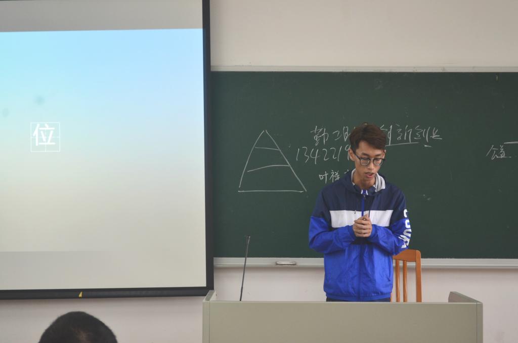 会议伊始是颜求实老师的讲话,颜求实老师首先对各位进入实习期的干部表示祝贺,介绍完云山勤工的历史之后,他引用习近平的“让人民群众有更多获得感”来展开说在勤工我们可以拥有的获得感:友谊、视野的拓宽和能力的提升等。最后他还提了几点要求,第一是要注意整个勤工框架,要站在一个经理的角度去思考和工作;第二是要注重细节,积极向上;第三是要把握好风险,注意食品、消防、财务等方面的安全。