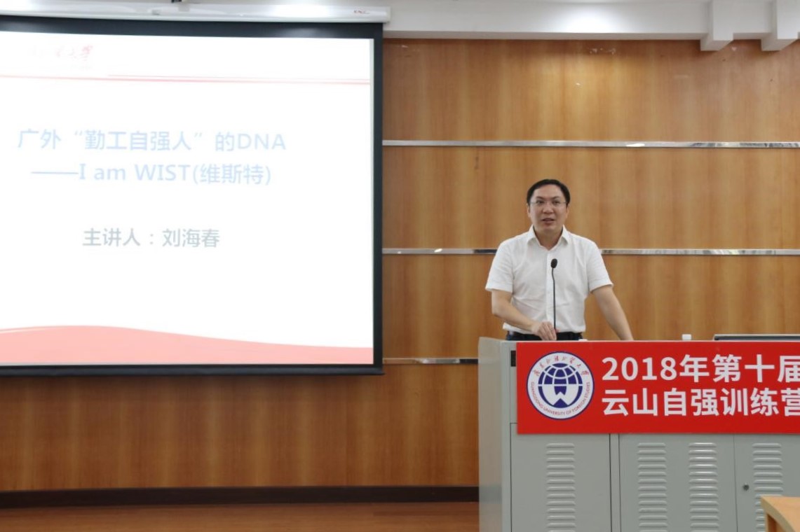刘海春在题为“广外‘勤工自强人’的DNA——I am WIST”的讲座中指出,勤工自强人应当具有“I am WIST”(独立自主Independence、能力扎实Ability、品德高尚Morality、意志坚定Will、勇于创新Innovation、优良作风Style、团队精神Team)的文化基因。他强调勤工自强人要自主、自尊、自立、自强,培养创业创新能力、决策能力、管理能力、学习能力以及公关能力,养成诚信、感恩、互助、奉献的良好品德,磨练意志,增强耐挫力,善于革新与尝试新事物,彰显服务、拼搏、忍耐、执着的风格,学习“狼群精神”、注重团队协作。他希望同学们充分利用平台,在学习工作中不断学会做人、做事、做学问。他希望同学们在实践中积极发挥主观能动性,善于发现问题并努力运用专业知识与技能去解决问题,从而实现创新创业发展。
