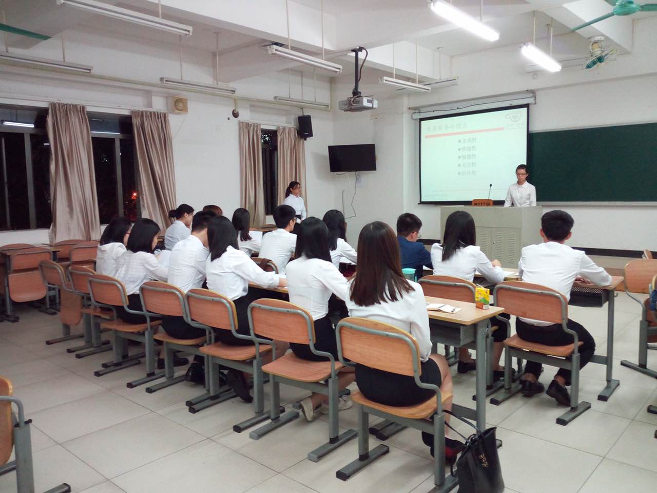 本网讯 4月16日晚,广外云山优座咖啡屋(北,以下简称“优座”)在六教B203举行了2017年春季招新实习员工项目展示。此次展示为全体实习员工提供了一个展示自己实习期成果的舞台,也为管理层提供了了解实习员工的渠道。本次项目展示沿用了二面“压力面试”的形式,以检验各位组员的抗压性和个人能力。本次展示面试官团队由全体项目主管和和管理层组成,对面试者的表现进行考核和提问。