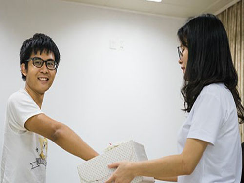 愉快的游戏环节之后,“小饼”们为了向“老饼”们表达感谢,带来大会的第二次大合唱。一首《小幸运》唱出了爱满屋成员遇到彼此的幸运,给大会带来了一丝感动。接下来,便是新员工为老员工献上精心准备的礼物的环节。抽签的方式使礼物赠送增加了悬念和刺激,看到老员工在收到礼物后掩不住的欣喜时新员工心里也充满激动,而送出的礼物也携带着新员工们满满的爱意。
