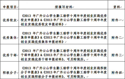 附件四:广外云山学生勤工助学十周年庆典年度积极分子申报表&申报材料模板