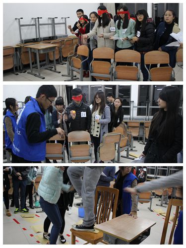 本次培训会的“孤岛求生”素质拓展项目进行了很大的创新,采用团队游戏的方式,看似简单轻松的游戏却不单薄肤浅,全体储干被分成三个大组分赴不同的教室进行项目。教室被分成三大块:自由岛,哑人岛和盲人岛,每个岛都有不同的任务。自由岛上的储干紧张地进行着头脑风暴,哑人岛上的储干手脚并用,只为实现与同伴的交流,盲人岛上的储干双眼被挡,不少组员手足无措,只能大声说话以传递信息。在重重障碍和条条禁令以及有限的时间内,三个岛上的储干各施所能,通力合作,靠着队友前搀后扶,凭着队友的坚定信任,终于让所有人都登上了自由岛,完成了项目。在笑声和掌声中,各位储干恍然大悟,回到主教室,各小组展开激烈的讨论,纷纷表示对团队协作有了更深的体悟。同舟共济,想必是最好的诠释。