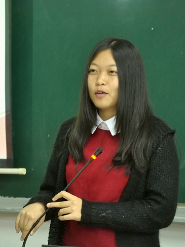 会议的第一个环节是洪洁发言。一上台的她就问了在座同学身为勤工人对参加党员大会的认识。同学们不语,接着她笑着对同学们说出了她自己的了解。她从勤工的建立开始,介绍了有关部门和实体的一些特色活动。进而引出了党支部的职能以及特色活动,比如勤工活动月,最优服务评选,以及勤工三下乡活动等的组织。她骄傲地对在场的新党员说出了党支部的口号:“我们是不一样的党支部,我们是最可爱的一家人!”话语里透露着她对党支部的热爱。除此之外,她还很高兴地说道:“虽然我们来自勤工的不同部门,来自不同学院不同专业,但我们相聚在这里,是党支部的一份子,我们就是可爱的一家人!”全场以热烈的掌声响应。