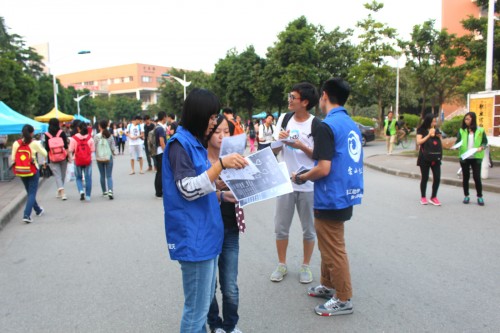 “同学,请问你有兴趣了解一下云山勤工微公益策划大赛吗?”“我们还有咨询摊位,欢迎到那边咨询”摊位前,工作人员不顾逐渐升高的气温,积极向校道上的同学们介绍微公益大赛。虽然辛苦,但有位工作人员却说:“很开心啊,为这次微爱发声微公益活动发传单感觉很有意义。” 而有疑问的同学,都到咨询摊位进行咨询。“请问你们赛事是如何进行的?”“策划书到时候在哪实施?”两位经理认真详细地解答同学们的疑问,并指出有疑问的同学可以登录云山勤工官网了解详请。