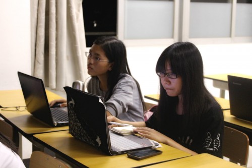 由于大部分学员对PS软件不熟悉,林子聪主要着重于基础的讲解。从PS中的各项工具入门,他详细介绍了各工具的使用方法,同时结合对图片的处理,即将工具运用到实处,以加深大家对这些工具功能的理解及应用。他还简单介绍了一些滤镜以及简述了一些简单视觉效果的制作方法。学员们开始时虽对这些制作方法望而生畏,但在自行操作过后发现并无想象中那么复杂,此起彼伏的鼠标敲击声就是大家认真努力操练的证明。