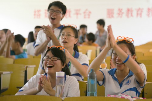 老师为优秀学生颁奖