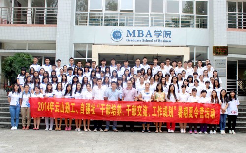 本网讯 2014年广外云山学生勤工助学(以下简称“云山勤工”)、新长城广东外语外贸大学自强社(以下简称“自强社”)暑期夏令营在广外白云山校区举行。夏令营以“干部培养、干部交流、工作规划”为主题,旨在提高干部管理层的团队工作能力及增强团队凝聚力。