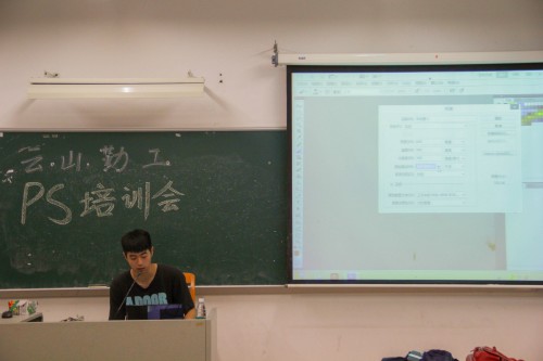 本网讯5月27日晚,广外云山学生勤工助学(南,下简称“云山勤工”)公共关系部(南,下简称“公关部”)在教学楼B208举行PS培训会。公关部每个学期都会举行PS培训会,旨在提高各单位公关专员的技术,从而提高海报质量,更好地宣传云山勤工。公关部经理黄凯琳出席了本次培训会。