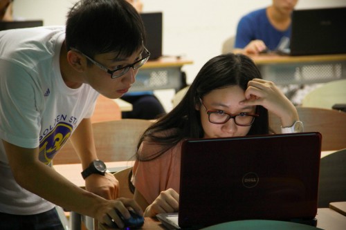 为了让学员更好地掌握PS技术,主讲人每讲几个步骤就会停下来让学员进行现场操作,而台下的学员也认真地听着培训,紧跟主讲人的节奏。另外,培训会现场还安排了两位助教,对于学员们提出的疑问,他们仔细解答,并手把手教学。
