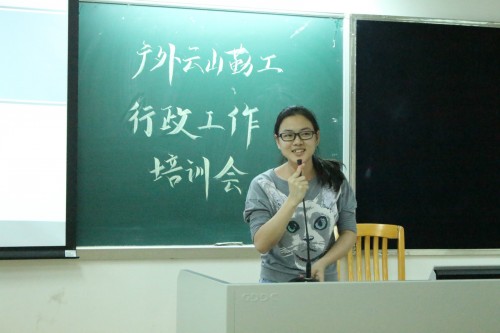 本网讯4月18日晚,广外云山学生勤工助学行政部(南,下简称“行政部”)在教学楼G208举办了行政工作培训会,参加培训会的有云山勤工董事会代表、各单位考察期正副经理及各单位行政人员。此次培训会旨在加强考察期管理层对行政工作的了解,以便日后更好地与行政部进行沟通,为所属单位及云山勤工贡献力量。