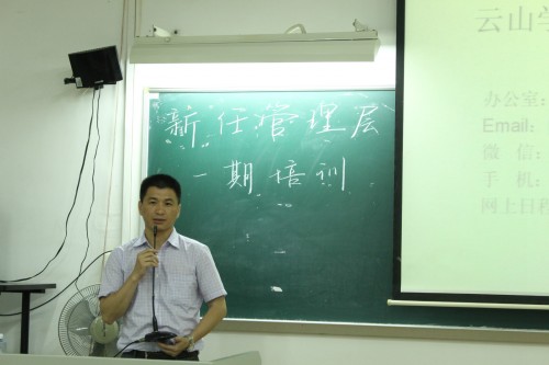 大会一开始由云山勤工指导老师陈哲进行培训指导。从工作总则到“六位一体”,他向在场考察期管理层展示了云山勤工的组织概况。而讲到“如何当经理”时,陈哲从战略、战术、做人、做事、定位、问题、评价、价值体现八个方面详细阐述了做经理的艺术。“带着解决问题的态度面对面交流”,“有付出才有可能收获”,他说道。