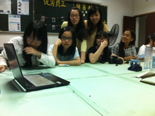 首先是分享环节,蜜柚邹文慧率先跟大家分享了美国励志真人秀《门徒》,这是一个讲述一群人利用自己的才智创业的故事,她的寓意在于号召大家积极响应学校最近开展的2014年大学生创业项目计划。接着主任张聪慧和现任信息编辑部主管梁永婷分别给实习主管们分配了任务,并且强调现任主管一定要做好交接工作,把秘书处精神传递下去。