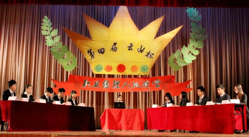 本网讯 4月10日晚,由广外云山学生勤工助学(南,下简称“云山勤工”)主办,广东省职业经理人协会(下简称“职经会”)协办的第四届“云山杯”职业经理人挑战赛总决赛在学生活动中心二楼顺利举行。广东省职业经理人协会副会长梁玉荣,协会理事郑永康、张志毅,广外学生处副处长何越晖、黄晓梅,学生就业指导中心副主任黄石胜以及优秀校友许伟灿、陈杰超、宋俊文等嘉宾莅临赛事。
