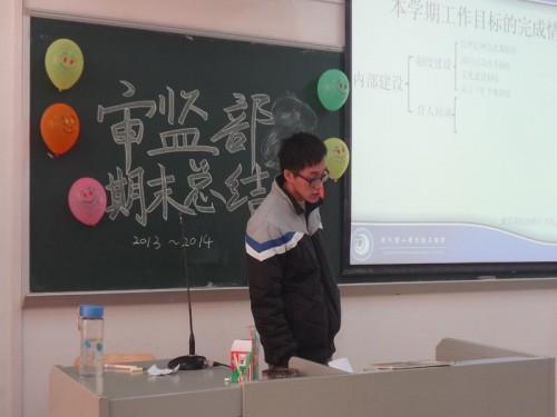 审计组主管古宇航和监察组主管罗泽阳分别就审计工作的思想理念和活动反思上回顾了这一个学期的工作。他们均指出了员工工作上存在的优缺点,给予了在场员工很多反思和鼓励。