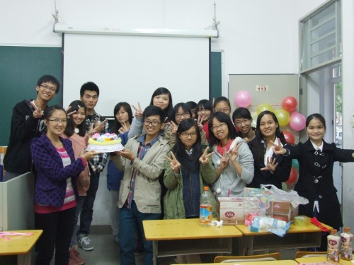 本网讯2013年12月1日,借广外云山学生勤工助学创办十年之盛事,云山勤工校友会秘书处(北,以下简称“秘书处”)的新旧员工聚集在四教113一起庆祝秘书处三周年,三周年庆典在温暖的下午四点开始,别有一番韵味。