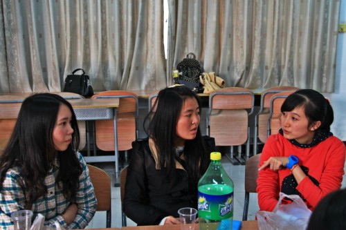 当天交流会在2:30分开始,南校的PR们早早就来到教室进行布置,为的就是让北校PR们感受到南校的热情。当南校副经理王璇带领PR们到车站时迎接北校PR时,虽然大多数人是初次见面,但大家很快就熟悉起来,一路上有说有笑,丝毫不见陌生感。