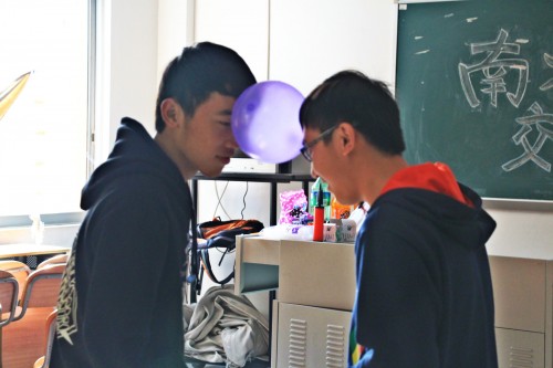 到场的PR们被分成两组,在南校PR邝玮琦的开场舞和简单的自我介绍后,就进入了交流会的第一个高潮——游戏环节。这次的游戏设置可谓别出心裁,“丑小鸭赛跑”——两个人额头夹着气球跑到终点;“我是听话的好孩子”——参赛者要以最快的速度做出与主持人口令相反的动作等等,无不让人捧腹大笑。而惩罚则更具有南校公关部“邪恶”特色,如惩罚者要与左边第一位异性走猫步等。在欢声笑语中,PR们的感情迅速增进。