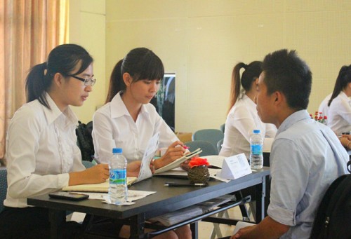 本次招聘会中面试官们都让面试者在轻松的氛围发挥自己的水平。一位面试了云山水榭、云山书吧、财务部等多个单位的面试者说,这次招聘会面试官都很亲切,面试也进行得很顺利,觉得自己有70%的把握能通过面试。