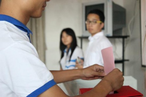 之后,大会进入第二个环节:换届选举。总监票人周敏宣读上级党组织作出的请示批复后,主持人黄鉴潮宣读《选举办法》,并向与会人员征求意见,《选举办法》获得一致通过后,大会还通过了苏晓燕、温美如、曾婉萍三位计票人的选举表决。接着由监票人简要介绍了11位候选人的基本情况,随后工作人员分发选票并说明选举选票的有关事项,正式党员及预备党员均认真填写选票,并依次有序地投票。投票结束,计票人当众启封投票箱,清点选票。