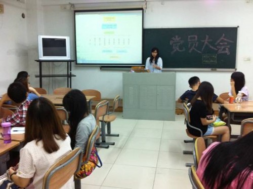 本网讯6月13日晚上7:00,云山学生勤工助学(下简称“云山勤工”)一学期一度党员大会于六教B202召开。据悉,本次党员大会由云山勤工党支部(下简称“党支部”)主办,旨在通过这次大会,让全体勤工党员对习近平总书记提出的中国梦有更加深刻的了解,也同时可以把中国梦和勤工梦更好地结合起来,在勤工的工作中更好地体现党员风范!