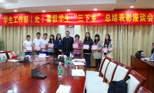 本网讯 2012年12月20日14:30,由云山学生勤工助学党支部承办的学生工作部(处)暑期学生“三下乡”总结表彰座谈会在南校区第一会议室(南,校办公楼103)顺利举行。本次表彰座谈会旨在表彰在今年暑期参与“三下乡”活动的三支下乡队伍中的先进个人,并通过队伍风采展示以及总结发言对本次“三下乡”活动进行深刻的总结与反思,为以后下乡活动的开展积累更多的经验。