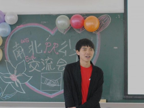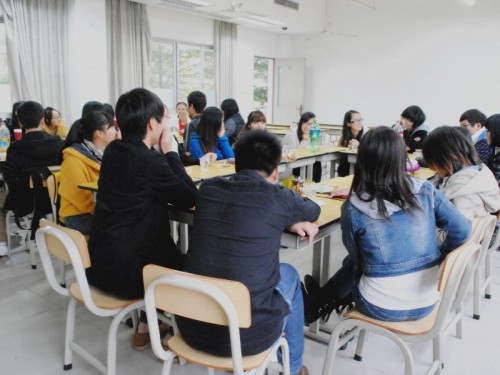 交流会第二项是游戏环节,PR们分成了两队,在两份分别确定了队名与口号之后,开始了“超级大拼盘”游戏,游戏要求参赛者在教室内找寻主持人要求的物品,并一一放到盘中,如高跟鞋,皮带,橡皮擦等。游戏有趣,参与者积极,瞬间使得整个交流会的气氛达到高潮。