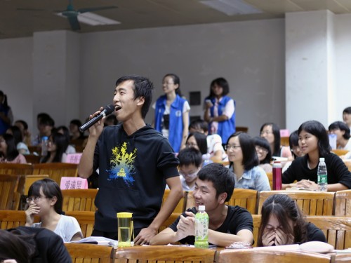 随后,原云山勤工主任团副主任、来自宝洁公司市场部的钟琳玲师姐从云山勤工是什么,在云山勤工该做什么以及在云山勤工能得到什么三个方面为新员工们传授经验。全过程中,员工们在台下细心倾听,受益良多。接下来,原云山勤工主任团副主任、来自普华永道中天会计师事务所的黄鹏飞师兄以风趣幽默的方式,结合自己的实习经历,告诉新员工们在云山勤工,他们的工作能力会得到增强,视野也会拓宽,并对新老员工们提出了宝贵的建议。