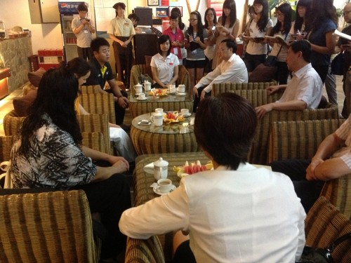 2012年10月14日下午两点,三大奥运明星(2012年伦敦奥运女子花样游泳团体银牌得主罗茜、2004年雅典奥运男子十米跳台金牌得主胡佳、2004年雅典奥运女子羽毛球双打金牌得主杨维)与广东外语外贸大学(以下简称“广外”)党委书记隋广军、广外副校长石佑启等到小站举行座谈会,罗茜的母亲及弟弟作为亲友团出席。