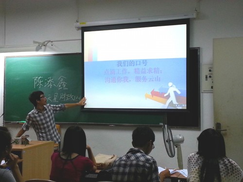 本网讯 10月19日晚,面向考察期员工的云山勤工行政部(南)内部岗位培训在教学区E307顺利进行。本次培训作为行政部文秘组新员工的考察期任务之一,由文秘组的四个考察期的员工策划并举办。此次培训既考察锻炼了考察期员工的策划组织和沟通协调的能力,又促进了新员工对云山勤工及行政部的了解。