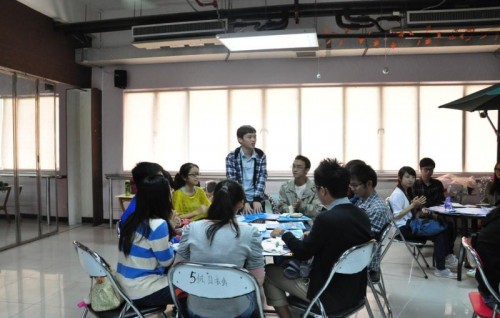 两个学校勤工的同学分组进行议题交流