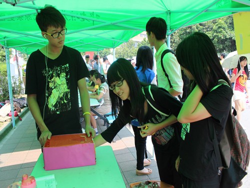 为了不失公平并顺利地完成选出属于广外人的云山特色本,这次投票分为微博投票和现场投票两种形式。不同的是形式,不变的是热情。线上的投票,同学们都积极转发微博并怀着悸动的心选出他们心仪的云山特色本,云山勤工官方微博不断的新消息提醒积累着大家高涨的热情;11号的校道摆摊现场投票,摊位前人头涌动,用作投票计数的便利贴在广外云山特色本下随着风摇曳,像是行行的旗帜在象征广外特色。另外,为了吸引更多的广外人来参与这次投票活动,主办方还设置了微博抽奖和现场抽奖的环节,奖品是非常诱人的2012年广外云山特色本首次刊发纪念套(10本)。