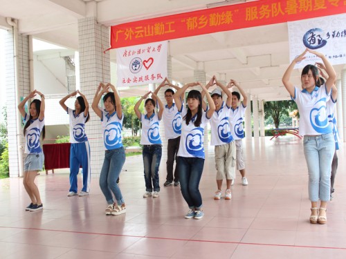 本网讯在文宣组的周密策划,其他组别的全力配合下,7月25日下午两点半,“郁乡勤缘”三下乡服务队全体成员和暑期夏令营的学生们齐聚一堂,在小广场举办了一场以汇报教学成果为主的文艺汇演。郁南县连滩中学总务处副主任叶柏生,教务处副主任叶青,团委老师练中强以及三下乡服务队的指导老师黄星出席了本次文艺汇演,全体三下乡队员以及150多个同学和部分家长观看了本次演出。