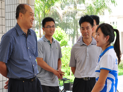 本网讯7月21日上午,广东外语外贸大学党委副书记卢景辉、学生处处长植秀聪、校团委书记谢秀兰及副书记陈兵等一行领导来到广东省云浮市郁南县连滩中学,在郁南县团县委书记赵广峰及连滩中学校长黄云开等人的陪同下,看望并慰问了广外云山学生勤工助学(下简称“云山勤工”)“郁乡勤缘”三下乡服务队。