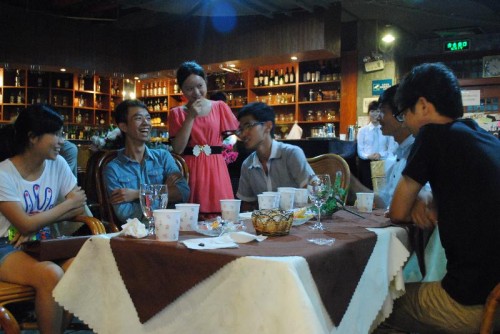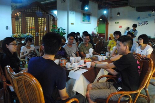 本网讯 6月21下午15:30-17:00,云山学生勤工助学(南,下称云山勤工)历任离任管理层人员在充满文馨、浪漫格调的云山水榭咖啡屋(下称水榭)聚首。飘香的水榭,热情高涨的云山勤工人,将2012云山勤工历任管理人员茶话会(下称茶话会)变成了一场温馨和睦的云山勤工大家庭聚会。