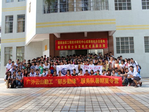 本网讯7月16日,广外云山学生勤工助学(下简称“云山勤工”)“郁乡勤缘”三下乡服务队在广东省云浮市郁南县连滩中学举行了隆重的“郁乡勤缘”见面会,为夏令营活动揭开帷幕。见面会后,各班分别进行班会并开始上课。