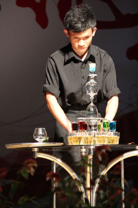 水榭吧员精心展示鸡尾酒制作过程